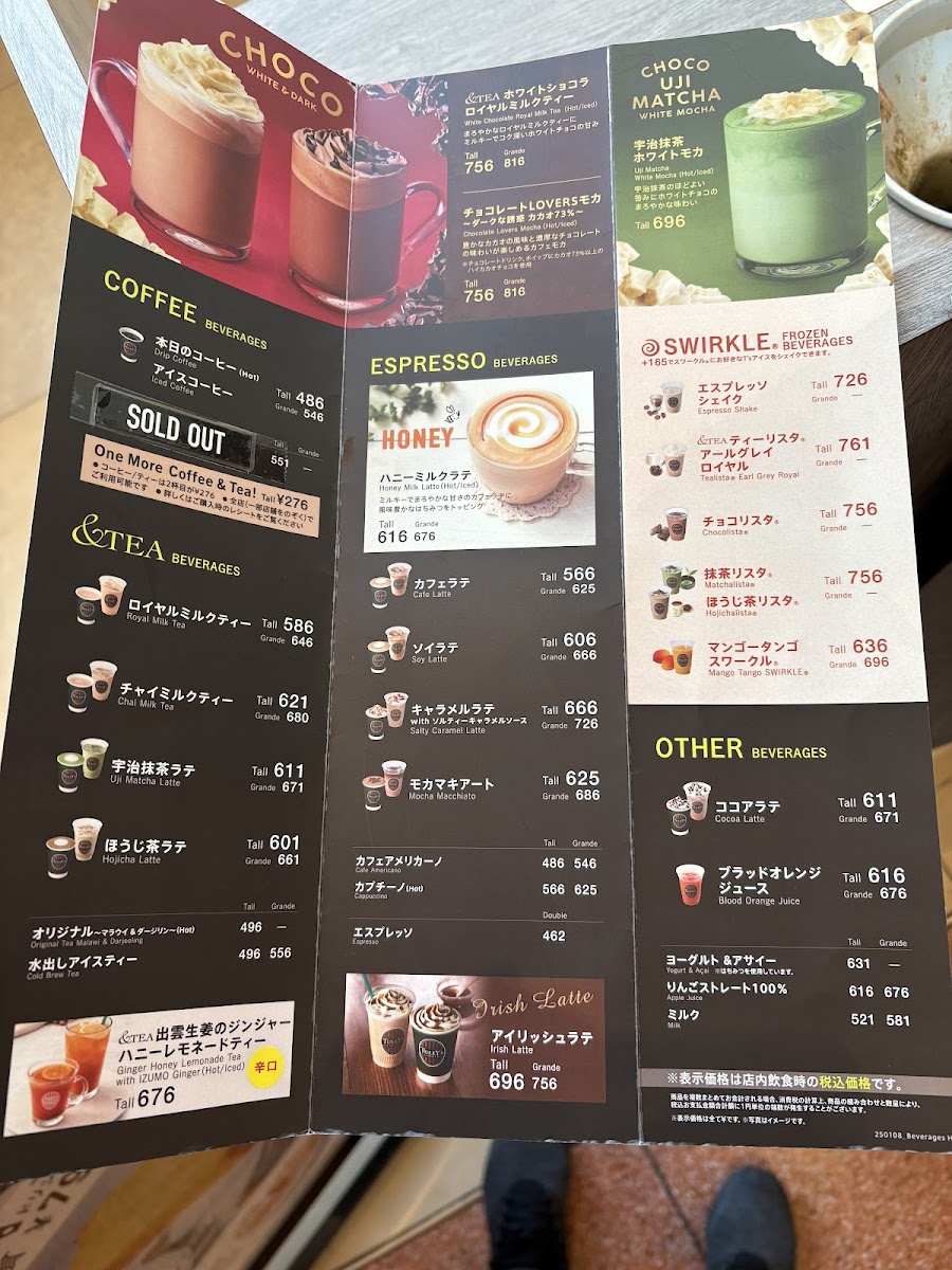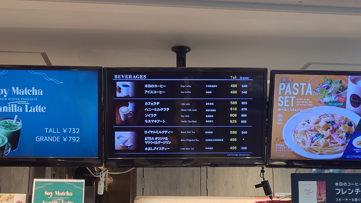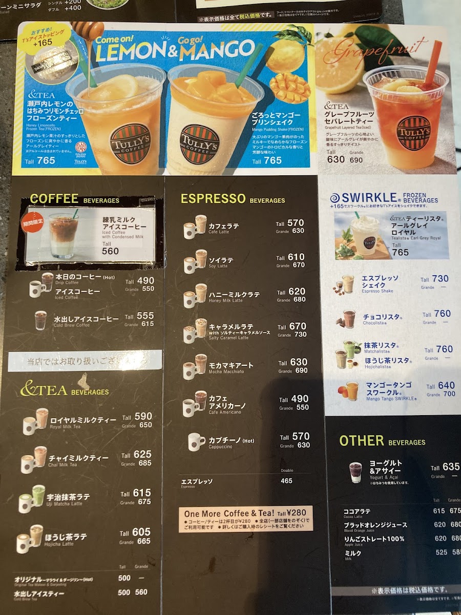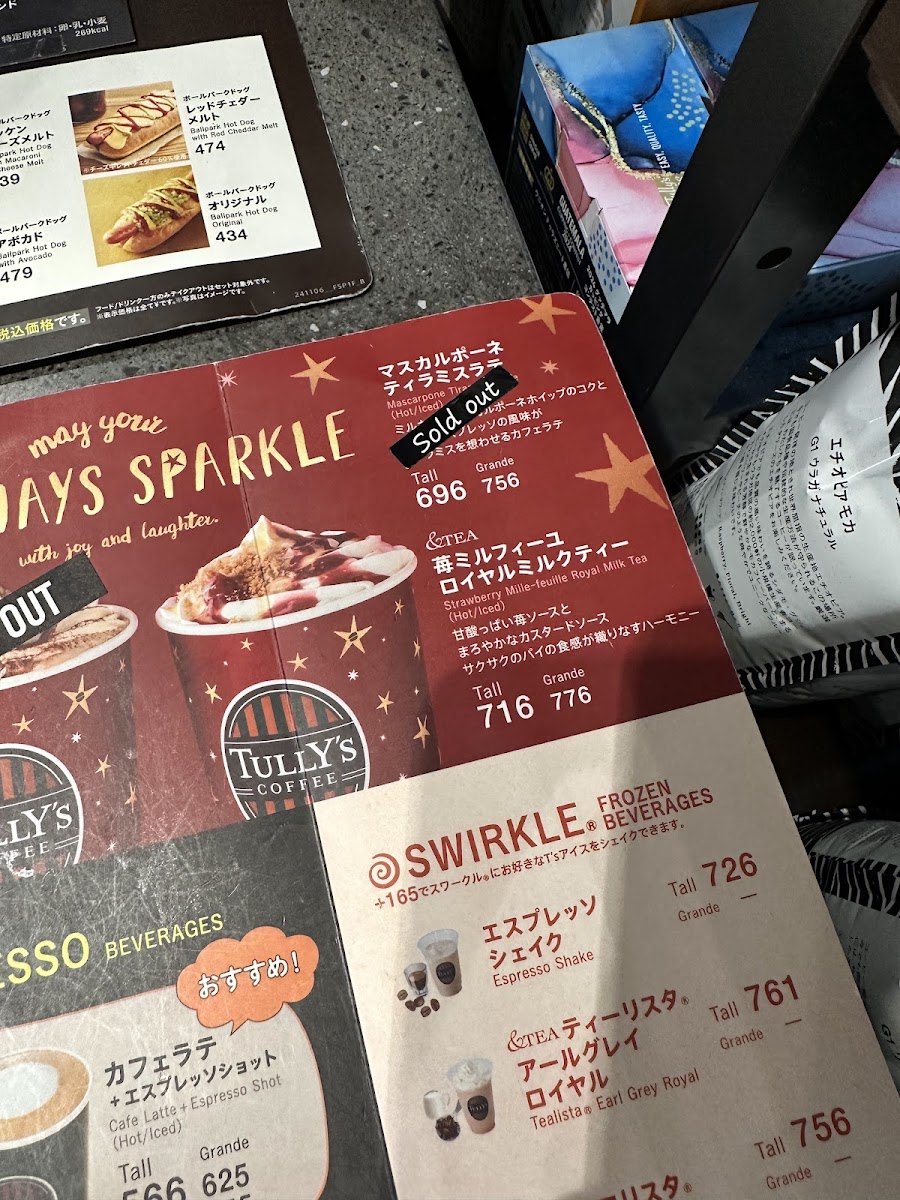 From a reviewer’s perspective, the menu at Tully's Coffee Haneda Airport T3 Shop feels thoughtfully curated for travelers who want something familiar yet comforting before or after a flight. The coffee and espresso selection is reliable and approachable, ranging from 本日のコーヒー and カフェ アメリカーノ(HOT/ICED) to the classic カプチーノ(HOT), all delivering a clean, balanced taste that works well in an airport setting. For those craving a sweeter indulgence, キャラメルラテ with ソルティーキャラメルソース(HOT/ICED) stands out with its rich caramel notes, while りんごストレート100% offers a simple, refreshing non-coffee option. Tea lovers are equally well served with the &TEA lineup, especially the fragrant オリジナル ~マラウイ&ダージリン~(HOT), the smooth 水出しアイスティー, and the comforting ロイヤルミルクティー(HOT/ICED). To round things off, the frozen Swirkle® drinks such as エスプレッソシェイク and &TEA ティーリスタ® アールグレイロイヤル provide a cool, satisfying choice for travelers in need of a quick pick-me-up. Overall, the menu successfully balances speed, quality, and variety, making it a dependable final stop for a drink at Haneda Airport Terminal 3.